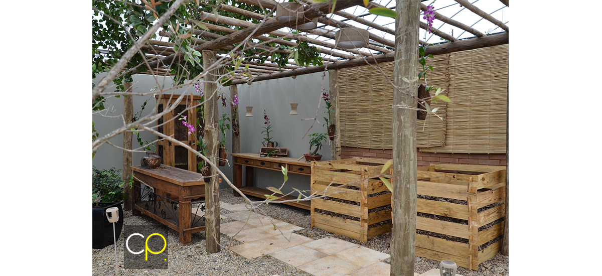 Além de ser um jardim absolutamente convidativo para um ótimo bate papo, com móveis de madeira e ferro (Garden & House), o espaço incentiva o cultivo de novos temperos, árvores frutíferas, vasos, utilizando os equipamentos de jardinagem que permanecem sempre a mão e o adubo reciclado dos resíduos gerados pelo próprio jardim.