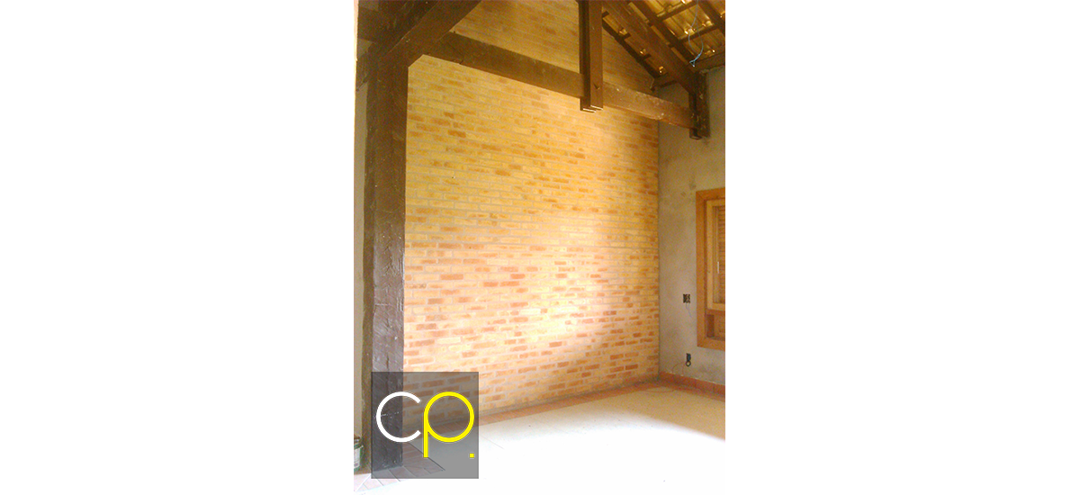 Localizada em um condomínio de terrenos rurais no distrito de Souzas em Campinas, os materiais escolhidos para construção, o tijolo e a madeira aparente, remetem à ideia de rusticidade da casa de campo, e a modernidade mostra-se com as grandes aberturas de vidro que ajudam no conforto térmico, facilitando a entrada de iluminação e ventilação natural.